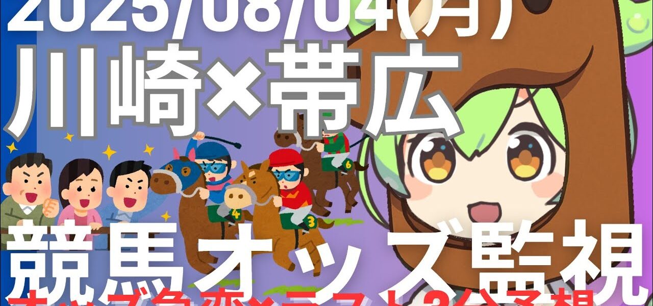 ・2025/08/04 開催地方競馬(川崎・帯広)の単勝・複勝オッズ変動を監視する配信です。