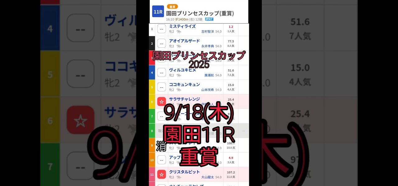 9/18(木)園田プリンセスカップ2025(園田11R、#重賞)#競馬予想 #地方競馬予想 #園田競馬 #園田競馬ライブ #園田 #競馬 #地方競馬 #馬券 #園田プリンセスカップ #重賞予想