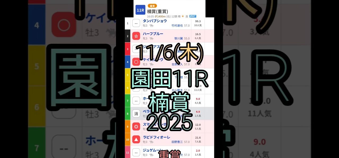 11/6(木)楠賞2025(園田11R、#重賞)#競馬予想 #地方競馬予想 #園田競馬 #園田競馬ライブ #園田 #競馬 #地方競馬 #馬券 #兵庫ジュベナイルカップ #重賞予想 #債務 #ギャンブル