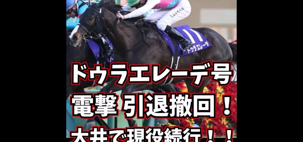 ホームページドゥラエレーデ号 まさかの引退撤回!大井競馬で 現役続行するみたいやで!! #shorts ドゥラエレーデ号 まさかの引退撤回!大井競馬で 現役続行するみたいやで!! #shorts nogizaka 投稿日: 2026年1月8日 ドゥラエレーデ号 大井競馬 藤田輝信厩舎で現役を続行!再び南関で輝いておくれ!! BGM : Yoshi-Yama I love dancing Aivis Speech : 0009c325 #競馬 #ドゥラエレーデ #中央競馬 #jra #大井競馬 #南関競馬 共有: Facebook で共有するにはクリックしてください (新しいウィンドウで開きます) Facebook クリックして X で共有 (新しいウィンドウで開きます) X いいね:いいね 読み込み中… 返信する コメントをキャンセルメールアドレスが公開されることはありません。 ※ が付いている欄は必須項目ですコメント ※ 名前 ※ メール ※ サイト 次回のコメントで使用するためブラウザーに自分の名前、メールアドレス、サイトを保存する。 nogizaka すべての投稿を表示 投稿ナビゲーション 前の投稿【地方→引退→地方】ドゥラエレーデが大井競馬に移籍! #shorts #競馬 #馬 #ドゥラエレーデ #武豊 #川田将雅 #坂井瑠星 #ムルザバエフ #松山弘平 #日本ダービー 次の投稿楽天競馬LIVE:#ゆるゆるばんば 1月8日(木) #田中歩 #渡辺和昭 #荘司典子 こちらの記事はいかがですか? 【競馬予想】天皇賞秋2023 来なければ引退の迷いなしの本命! 相手は府中巧者と展開恵まれる穴馬で大勝負!! イクイノックス ドウデュース等 nogizaka 2023年10月28日 この場所が気に入ったようです。 nogizaka 2023年7月7日 退職祝い、馬 #shorts #競走馬 #引退馬 #馬好きな人と繋がりたい nogizaka 2025年4月14日 「レモンポップ、引退へ」に対するみんなの反応集 nogizaka 2024年11月14日