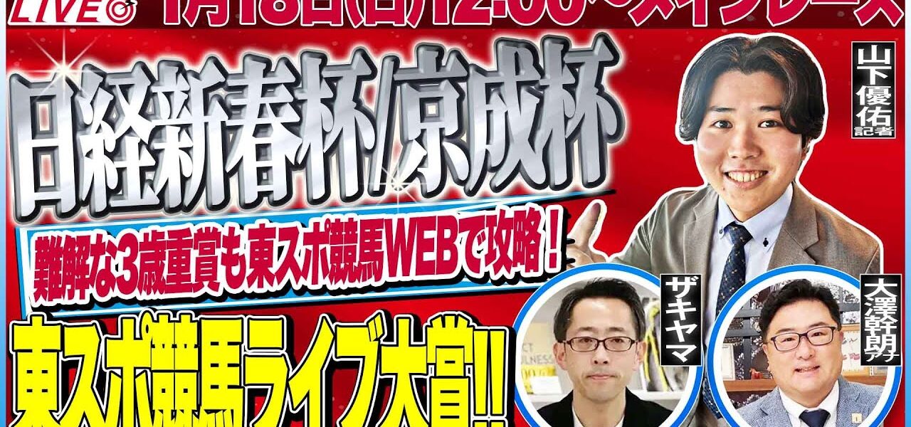#競馬 #予想 #日経新春杯 #日経新春杯2026 #京成杯 #京成杯2026 # #2025 # #2025 #古馬 #クラシック #新馬戦 #若駒 #重賞 #g1 #g2 #G3 #ハンデ重賞 #キャリーオーバー #win5 #win5予想 #win5少点数 #ギャンブル #jra #日本中央競馬会 #中央競馬 #海外競馬 #ドバイ #香港 #東スポ競馬 #東スポ競馬LIVE #東スポ競馬ライブ #東スポ #東京スポーツ新聞社 #立川敬太 #大坂寅生 #一撃 # #山河浩 #垰野忠彦 #藤井真俊 #三嶋まりえ #関東本紙 #舘林勲 #権藤時大 #栗栖歩乃花 #栗栖ほのか #クリスチャン #山下優佑 #大友正太郎 #運動理論馬券 #岡本将孝 #編集長 #ザキヤマ #編集長ザキヤマ #大澤幹朗 #馬匠 #渡辺薫 #horse #horseracing