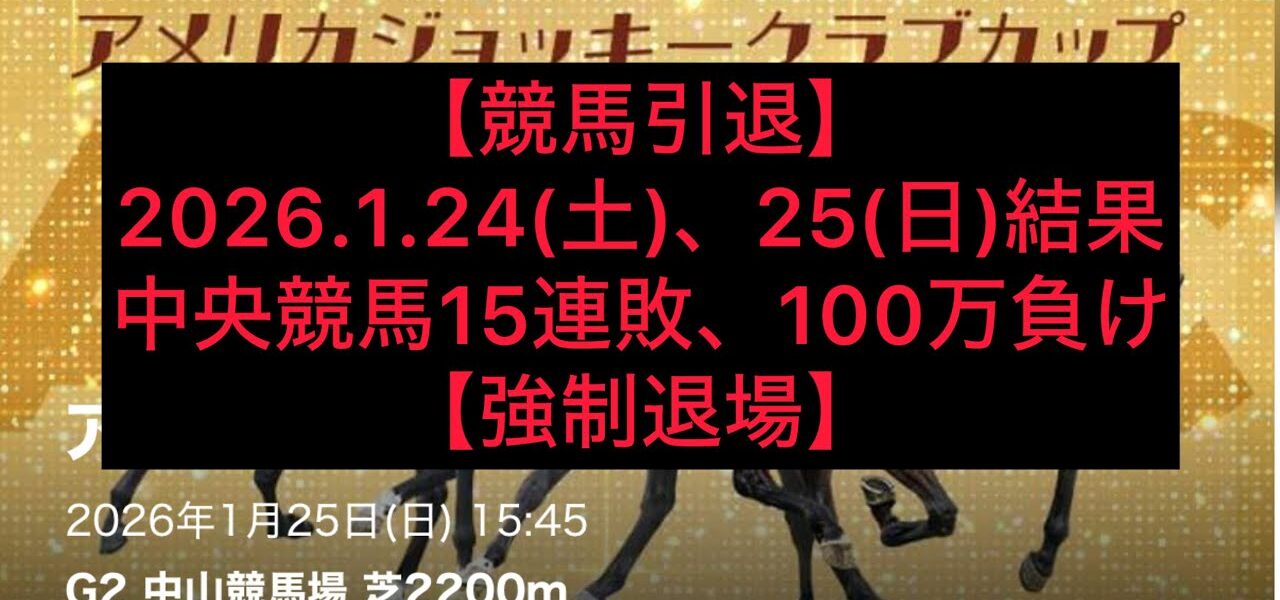 【競馬引退】2026.1.24(土)、25(日)結果【強制退場】