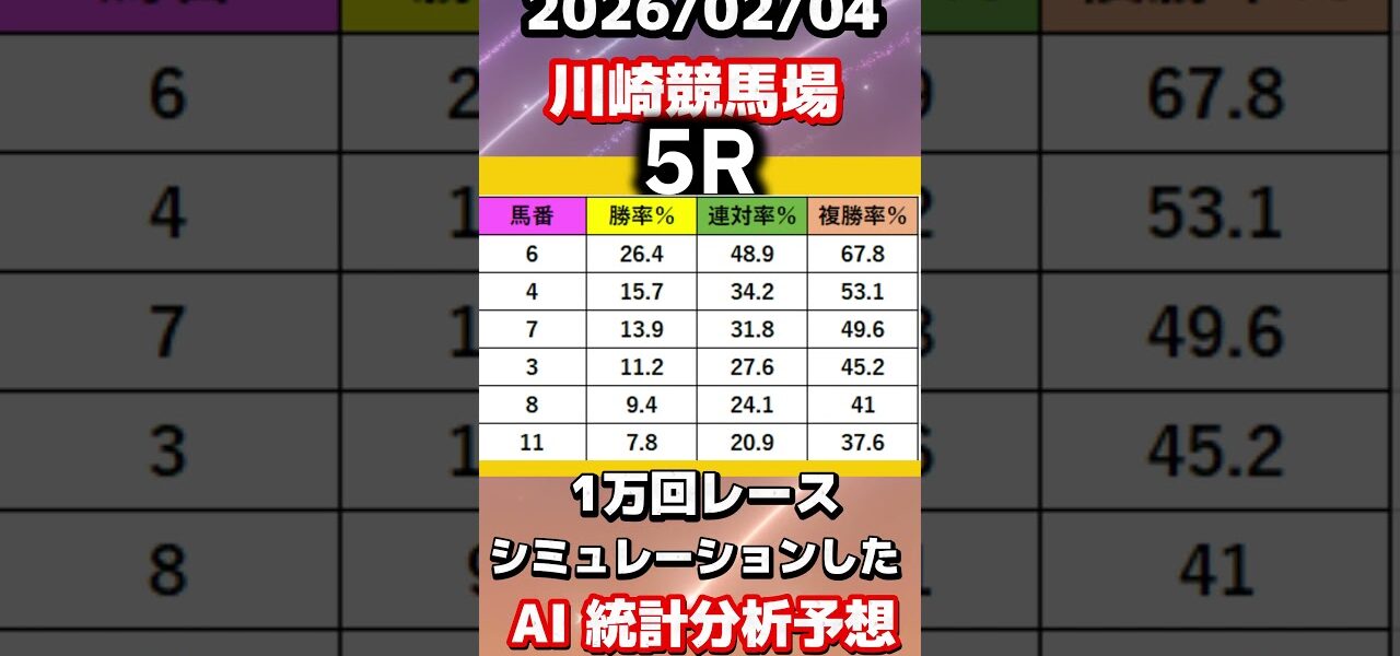 地方競馬ならではの“クセ馬”“クセ厩舎”を過去レース・調教・厩舎コメント・展開傾向はもちろん、当日の天候・風向き・馬場傾向を計算し、レースシミュレーションを1万回行った結果を独自で開発したAIで解析し、統計分析を%表示で大公開。