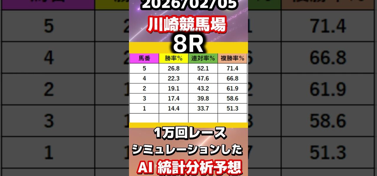 地方競馬ならではの“クセ馬”“クセ厩舎”を過去レース・調教・厩舎コメント・展開傾向はもちろん、当日の天候・風向き・馬場傾向を計算し、レースシミュレーションを1万回行った結果を独自で開発したAIで解析し、統計分析を%表示で大公開。