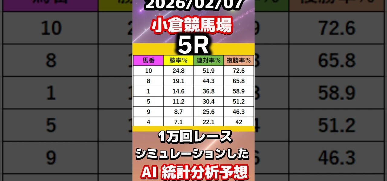 【競馬予想】2026/02/07 小倉競馬全レースAI予想!! #shorts #競馬予想 #中央競馬ライブ #中央競馬予想 #小倉競馬予想