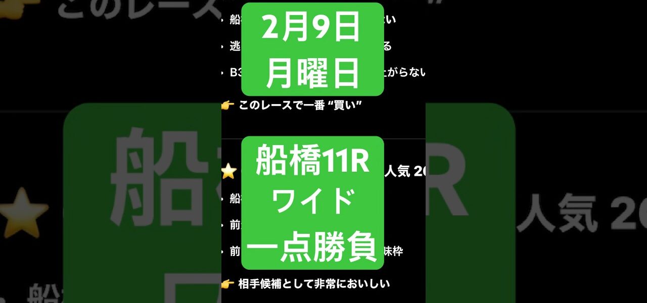 今日の船橋11Rアメジスト特別 #船橋競馬ライブ #船橋競馬 #地方競馬ライブ #帯広競馬ライブ #ばんえい競馬 #馬券 #ワイド1点