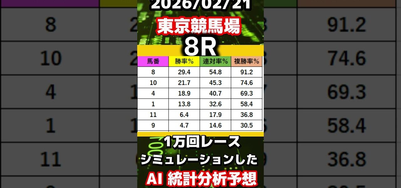 【競馬予想】2026/02/21 東京競馬全レースAI予想!! #shorts #競馬予想 #東京競馬予想 #ダイアモンドステークス予想 #中央競馬ライブ