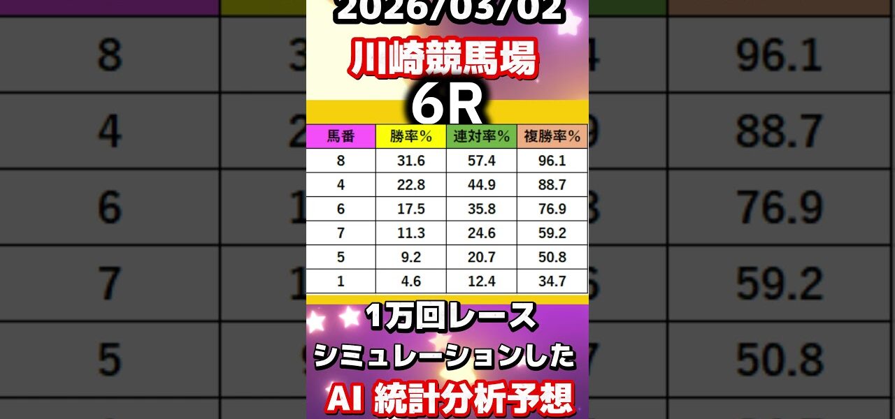 地方競馬ならではの“クセ馬”“クセ厩舎”を過去レース・調教・厩舎コメント・展開傾向はもちろん、当日の天候・風向き・馬場傾向を計算し、レースシミュレーションを1万回行った結果を独自で開発したAIで解析し、統計分析を%表示で大公開。