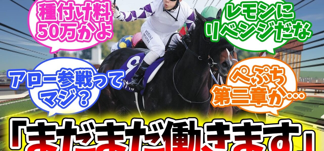 ホームページ【ペプチドナイル】「引退、おっさん種牡馬へ 」【競馬】 【ペプチドナイル】「引退、おっさん種牡馬へ 」【競馬】 nogizaka 投稿日: 2026年3月2日 今回は【ペプチドナイル】「引退、おっさん種牡馬へ 」 に対するみんなの反応集をご紹介しました。 引用https://bbs.animanch.com/board/6388493/ #競馬 #競馬反応集 #競馬の反応集 #反応集 #ペプチドナイル #キンカメ産駒 #引退 共有: Facebook で共有 (新しいウィンドウで開きます) Facebook X で共有 (新しいウィンドウで開きます) X いいね:いいね 読み込み中… 返信する コメントをキャンセルメールアドレスが公開されることはありません。 ※ が付いている欄は必須項目ですコメント ※ 名前 ※ メール ※ サイト 次回のコメントで使用するためブラウザーに自分の名前、メールアドレス、サイトを保存する。 nogizaka すべての投稿を表示 投稿ナビゲーション 前の投稿東西7調教師が定年引退 国枝栄は通算1123勝で有終V、佐々木晶三師「悔いは全くありません」 次の投稿【高知競馬ライブ】3/2(月) 7R〜9R(B-2/四十寺山特別/高知ファイナル)をワイワイ予想|初心者なおクンが帯をとるまで! こちらの記事はいかがですか? アンモシエラ、牧場は早く引退させたいらしいけど…【反応集】 nogizaka 2025年11月7日 訃報『昨年の菊花賞馬、アスクビクターモア亡くなる。』【競馬まとめ】 nogizaka 2023年8月9日 【物語】落馬事故で脊髄損傷 引退した元騎手・妹尾将充さんの新たな人生 高知 NNNセレクション nogizaka 2025年5月29日 【エンプレス杯2023】感動‼️ サルサディオーネ 引退レース 無事走り 厩務員が涙 現地映像 nogizaka 2023年3月1日