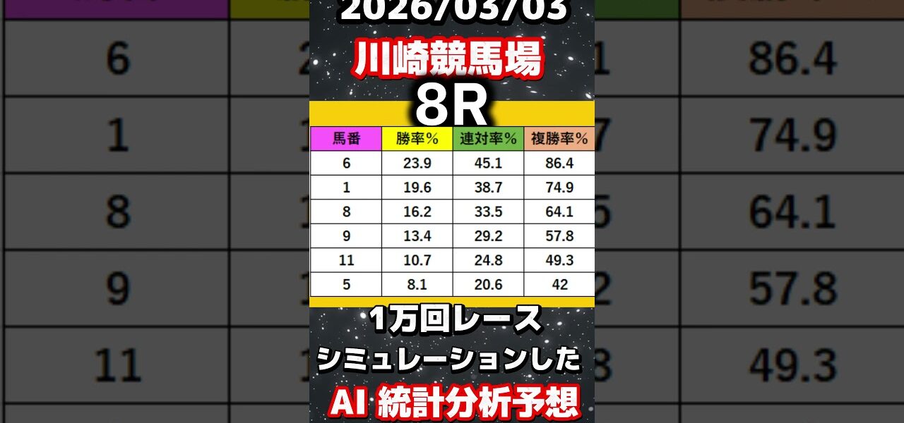 地方競馬ならではの“クセ馬”“クセ厩舎”を過去レース・調教・厩舎コメント・展開傾向はもちろん、当日の天候・風向き・馬場傾向を計算し、レースシミュレーションを1万回行った結果を独自で開発したAIで解析し、統計分析を%表示で大公開。