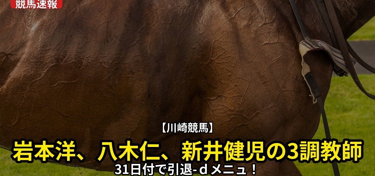 川崎競馬から、岩本洋調教師、八木仁調教師、新井健児調教師の3名が、31日付で引退することが発表されました。