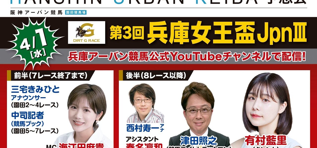 【HANSHIN URBAN KEIBA 予想会】2026/4/1 第3回兵庫女王盃(JpnⅢ)