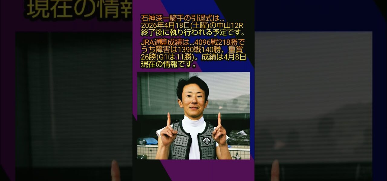 【現役引退】石神深一騎手、2026年4月末で現役引退、調教助手へ転身!!