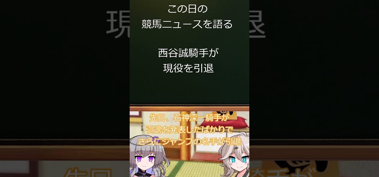 ホームページ西谷誠騎手が現役を引退 4月14日 #shorts #競馬 西谷誠騎手が現役を引退 4月14日 #shorts #競馬 nogizaka 投稿日: 2026年4月14日 #shorts #競馬 #競馬予想 #競馬ニュース このニュースのリンク https://news.netkeiba.com/?pid=news_view&no=328019 可能な限り毎日投稿するよ 動画素材 春日部つむぎと冥鳴ひまりと四国めたんの立ち絵:moiky様 しのびぃ~様 ニコ二・コモンズ VOICEVOX 共有: Facebook で共有 (新しいウィンドウで開きます) Facebook X で共有 (新しいウィンドウで開きます) X いいね:いいね 読み込み中… 返信する コメントをキャンセルメールアドレスが公開されることはありません。 ※ が付いている欄は必須項目ですコメント ※ 名前 ※ メール ※ サイト 次回のコメントで使用するためブラウザーに自分の名前、メールアドレス、サイトを保存する。 nogizaka すべての投稿を表示 投稿ナビゲーション 前の投稿4/13(月) 大井競馬 名古屋競馬 の馬券に絡む馬番を透視し配信します。穴馬探しや大穴馬券ゲットにお役立て下さい 次の投稿皐月賞2026【考察動画】今週も見つけました。直近に面白い傾向が…⁉️ こちらの記事はいかがですか? 社台スタリオンステーションに行った時のやつ#競馬 #雑学 #horse #ショート動画 #馬 #引退競走馬 #イクイノックス#キタサンブラック nogizaka 2025年5月18日 【外れたら引退⁉︎】#天皇賞秋 #マスカレードボール #買い目 nogizaka 2025年10月26日 よっさん 競馬強制引退!? JRAストライキ発生 中止なら24年ぶり 2023年03月16日21時 nogizaka 2023年3月16日 阪神競馬場 松永昌博 引退式 騎手でナイスネイチャー トレーナでマイルCS優勝 にウインバリアシオン nogizaka 2024年3月9日