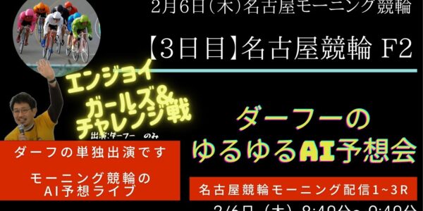 【2月6日(木)】モーニング競輪ライブ_名古屋競輪場編_1R~3Rまで!/レース映像も流れます。ゆるゆる予想とロトプレAI予想 ~第289章~