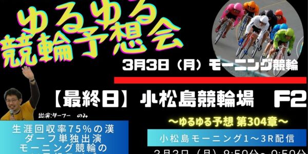 【3月3日(日)】モーニング競輪ライブ_小松島競輪場編_1R~3Rまで!ゆるゆる予想とロトプレAI予想 ~第304章~