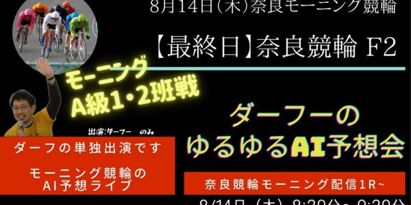 【8月14日(木)】モーニング競輪ライブ_奈良競輪場編_1R~3Rゆるゆる予想とロトプレAI予想 ~第373章~