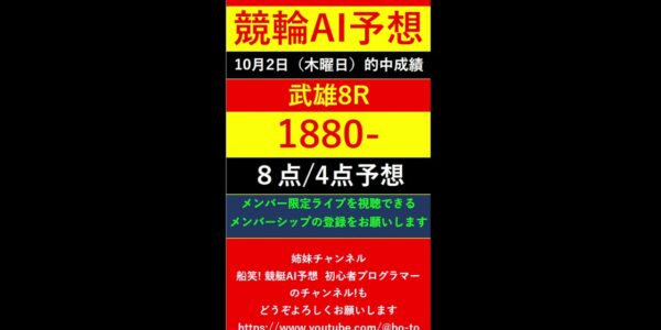 #Shorts【競輪予想LIVE 】競笑輪!競輪初心者のAI予想チャンネル。2025年10月2日 予想結果のご案内です。ご視聴の皆様、本日はお疲れ様でございました! #いわき平競輪