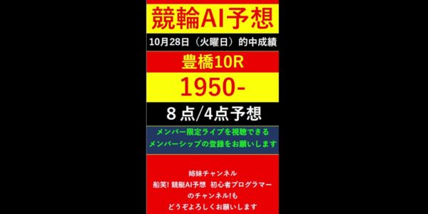 #Shorts【競輪予想LIVE 】競笑輪!競輪初心者のAI予想チャンネル。2025年10月28日 予想結果のご案内です。ご視聴の皆様、本日はお疲れ様でございました! #いわき平競輪