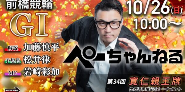 チャリロト公式競輪番組 加藤慎平の「ぺーちゃんねる」10/26(日)【最終日】#前橋競輪 第34回寬仁親王牌・世界選手権記念トーナメント [GⅠ]