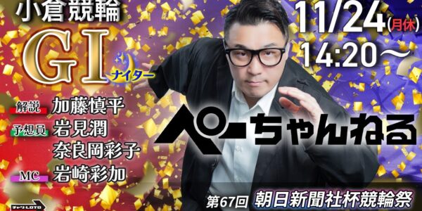 チャリロト公式競輪番組 加藤慎平の「ぺーちゃんねる」11/24(月休)【最終日】#小倉競輪 第67回朝日新聞社杯競輪祭 [GⅠナイター]