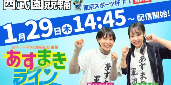 西武園競輪 公式インターネットライブ【飯田あすか と 高木真備の あすまきライン】西武園ナイター競輪 第16回東京スポーツ杯 F1 3日目【2026年1月29日】#西武園競輪ライブ #西武園競輪中継