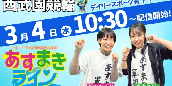西武園競輪 公式インターネットライブ【飯田あすか と 高木真備の あすまきライン】西武園競輪 第34回デイリースポーツ賞 F1 1日目【2026年3月4日】#西武園競輪ライブ #西武園競輪中継