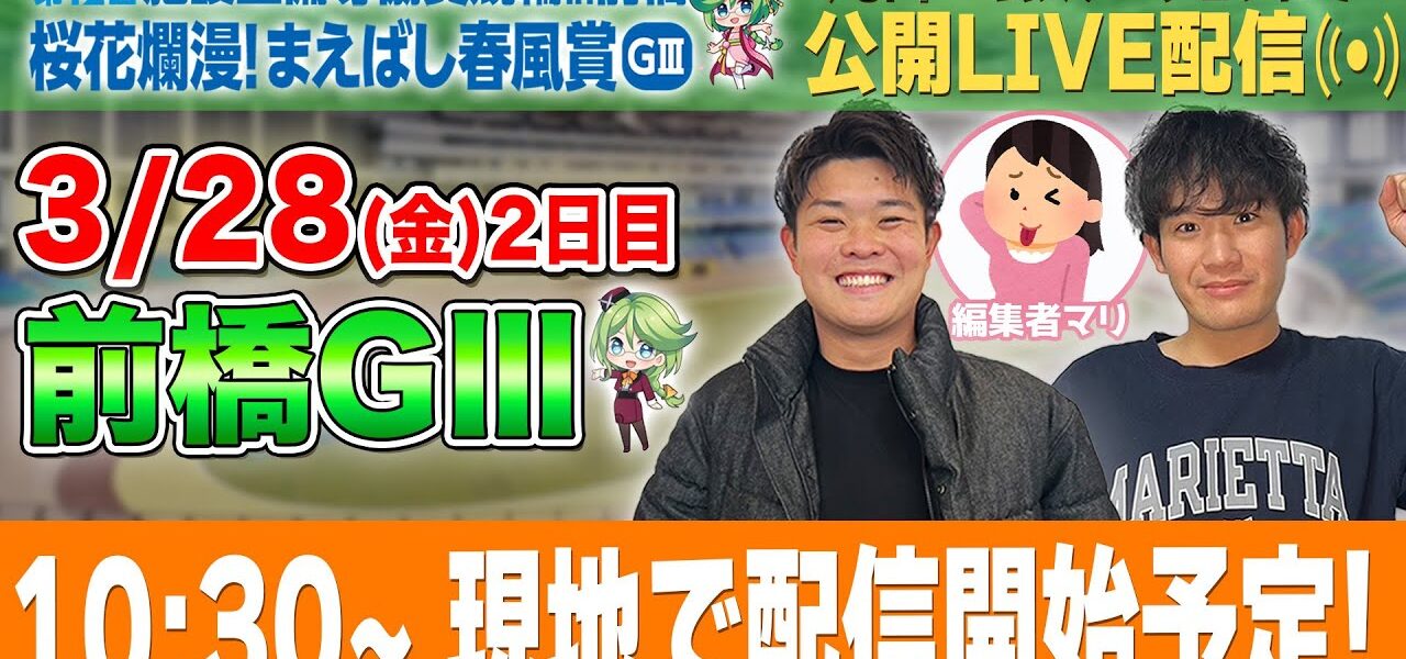3/28(金) 10:30頃から最終12Rまで全レース生配信予定です!