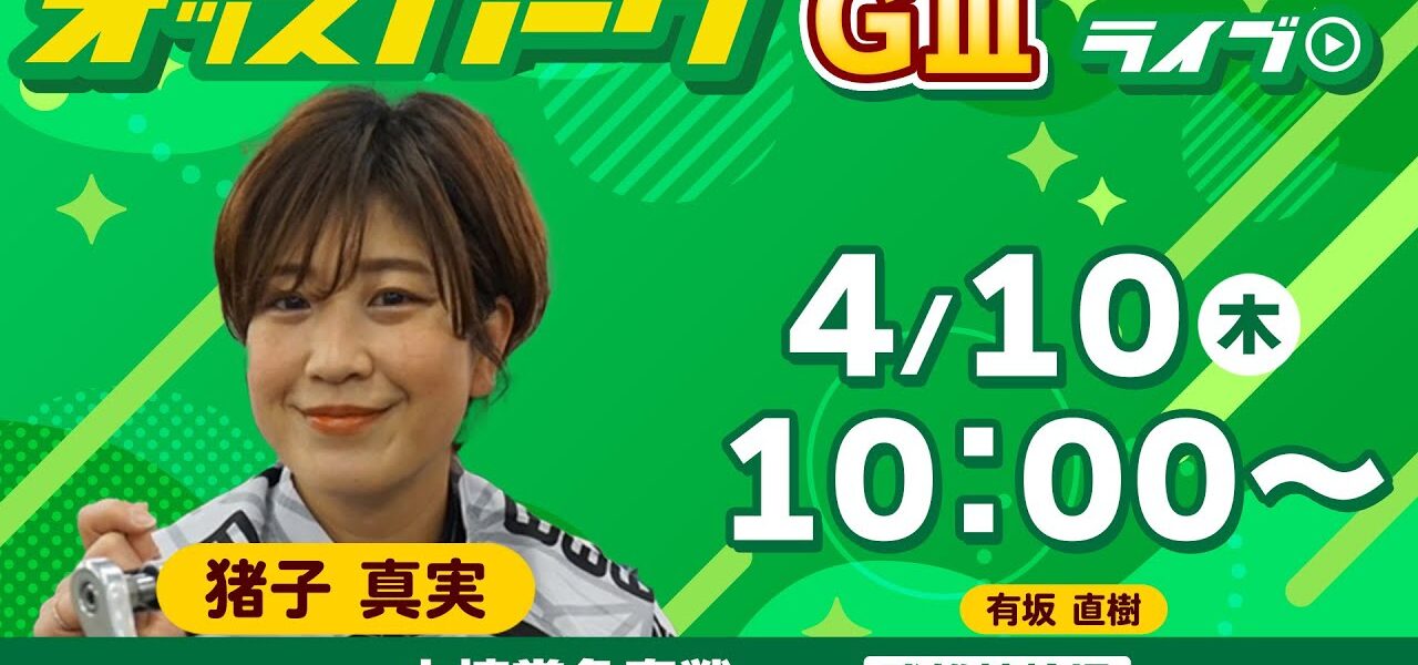 「オッズパークGⅢライブ」では熱戦のGⅢを4日間生配信。伝説の1,000,000車券を世に送り出した元ガールズケイリン選手・猪子真実さんがレジェンドをお相手にMCを務めます。まさに「猪子祭り」、「INOKO フェスティバル」‼