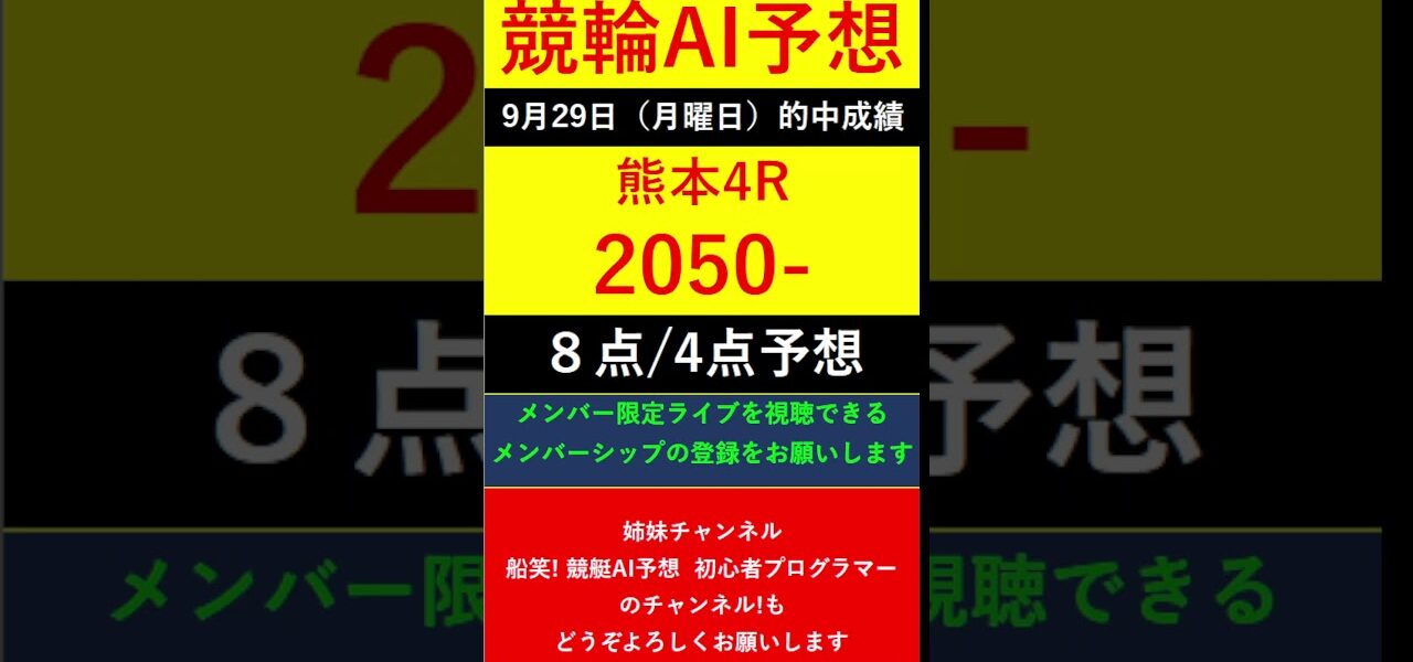 #Shorts【競輪予想LIVE 】競笑輪!競輪初心者のAI予想チャンネル。2025年9月29日 予想結果のご案内です。ご視聴の皆様、本日はお疲れ様でございました! #いわき平競輪