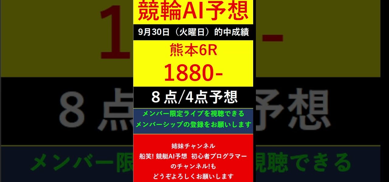 #Shorts【競輪予想LIVE 】競笑輪!競輪初心者のAI予想チャンネル。2025年9月30日 予想結果のご案内です。ご視聴の皆様、本日はお疲れ様でございました! #いわき平競輪