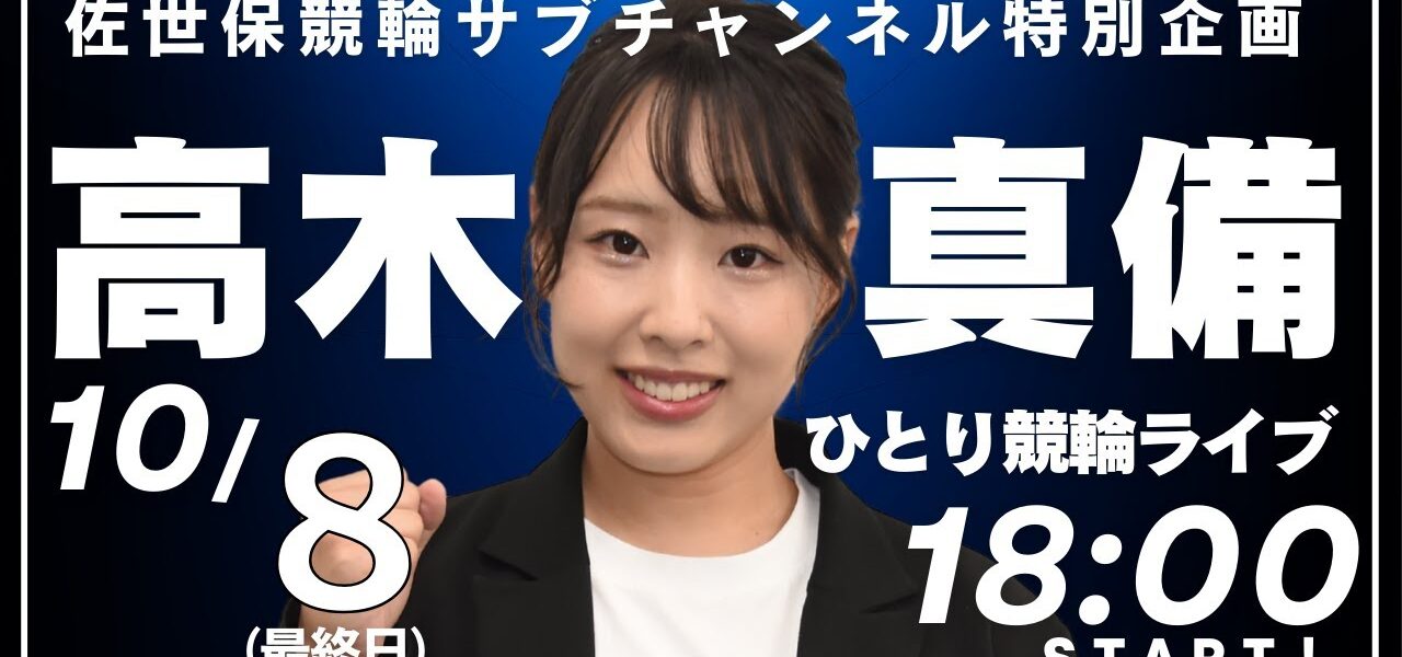 ホームページライブ高木真備のひとり競輪ライブ ■10月8日 佐世保【FⅠ】ナイター「深佐屋精肉店杯」3日目・最終日 ライブ 高木真備のひとり競輪ライブ ■10月8日 佐世保【FⅠ】ナイター「深佐屋精肉店杯」3日目・最終日 管理人 投稿日: 2025年10月8日 プレゼント応募フォーム https://quiz.nikkansports.com/answer/pc/1382 ■高木真備のひとり競輪ライブ 佐世保【FⅠ】ナイター「深佐屋精肉店杯」3日目・最終日 2025年10月8日(水)18:00頃から配信開始 ■出演 高木真備 共有: Facebook で共有するにはクリックしてください (新しいウィンドウで開きます) Facebook クリックして X で共有 (新しいウィンドウで開きます) X いいね:いいね 読み込み中… 返信する コメントをキャンセルメールアドレスが公開されることはありません。 ※ が付いている欄は必須項目ですコメント ※ 名前 ※ メール ※ サイト 次回のコメントで使用するためブラウザーに自分の名前、メールアドレス、サイトを保存する。 管理人 すべての投稿を表示 投稿ナビゲーション 前の投稿【競輪ライブ】青森競輪(2日目)2025/10/8(水) 次の投稿【競輪はデータだ!】過去のレースを参考に車券を買った結果 こちらの記事はいかがですか? ライブ 施設整備等協賛富山GⅢ3日目チャリロトコラボコバケンライブ 管理人 2022年11月19日 ライブ 取手けいりん[FⅠ] 「CTC杯・デイリースポーツ賞」3日目 管理人 2022年6月15日 ライブ 【岸和田競輪】令和6年4月18日 やっぱ!オズパ!杯 FⅡ 1日目【ブッキースタジアム岸和田】 管理人 2024年4月18日 ライブ 【2025.01.15】松山競輪誕生記念レース 日本名輪会カップ 第17回伊藤豊明杯 デイリースポーツ杯争奪戦(FⅠ)3日目 管理人 2025年1月15日