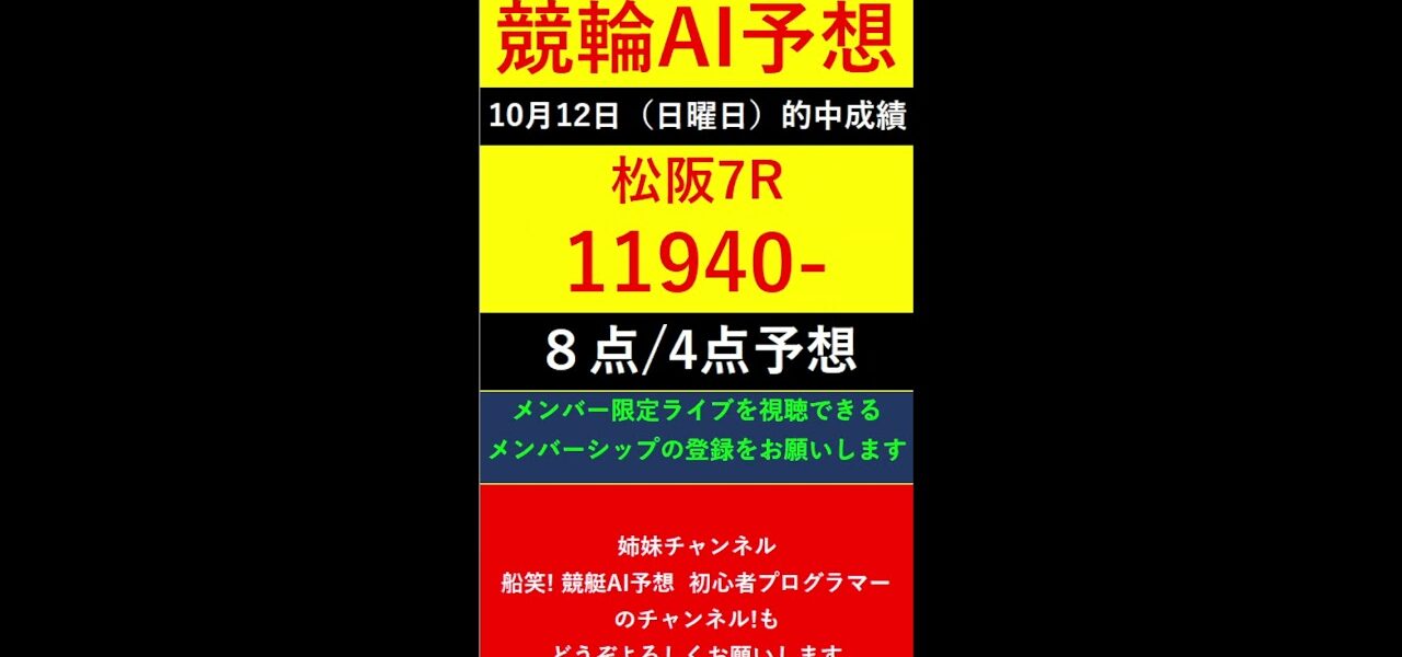 #Shorts【競輪予想LIVE 】競笑輪!競輪初心者のAI予想チャンネル。2025年10月12日 予想結果のご案内です。ご視聴の皆様、本日はお疲れ様でございました! #いわき平競輪