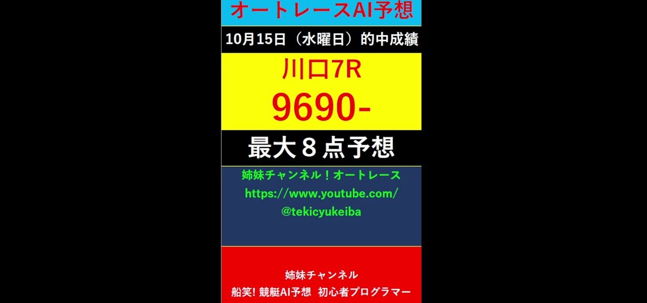 #Shorts【競輪予想LIVE 】競笑輪!競輪初心者のAI予想チャンネル。2025年10月15日 オートレース予想結果のご案内です。ご視聴の皆様、本日はお疲れ様でございました!