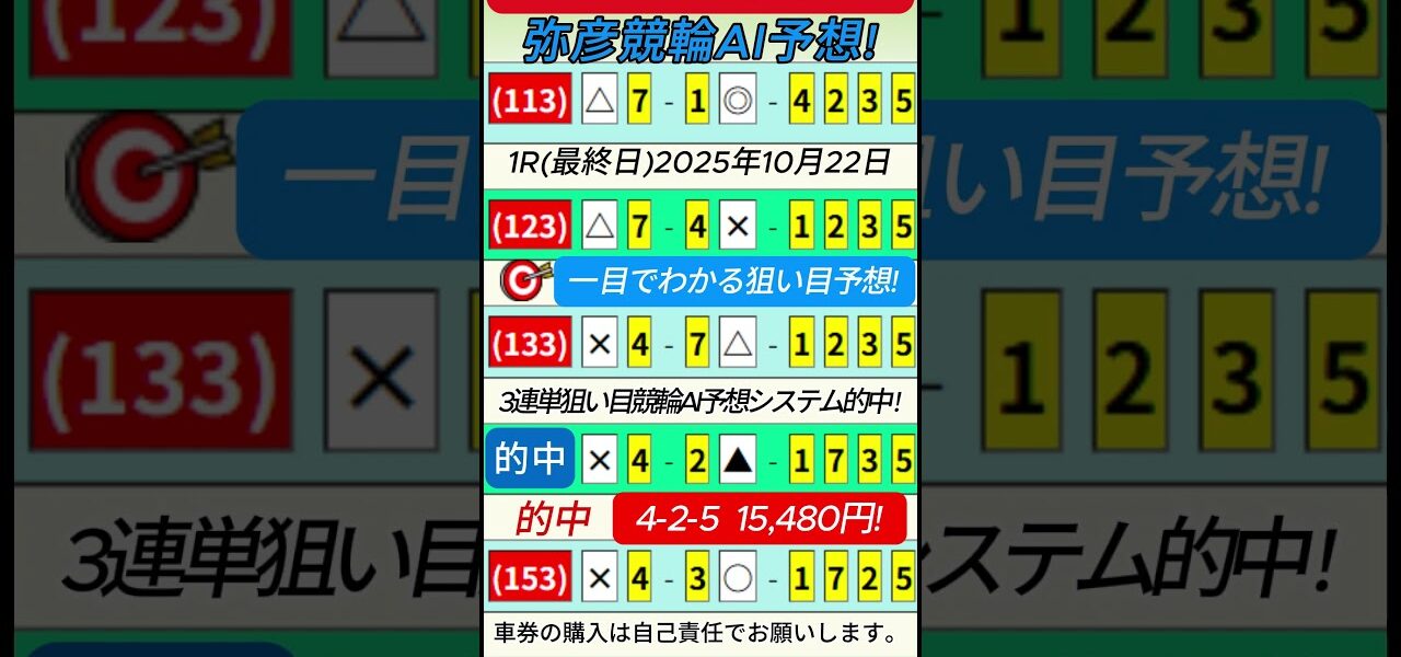 提供しているヨソカツ競輪予想情報を使って勝手に !弥彦競輪AI予想(最終日)1R 連単.4-2-5 15,480円!ズバリ的中!😊