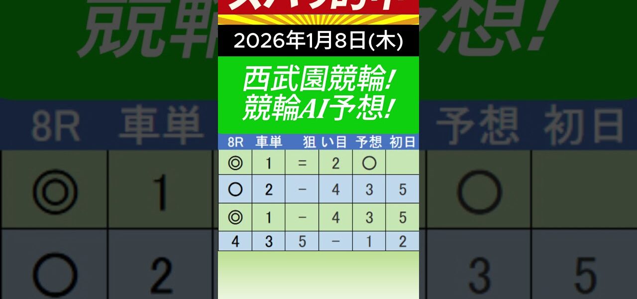 勝手に競輪予想スペシャル!西武園競輪AI予想!(初日)8R予想してみました。
