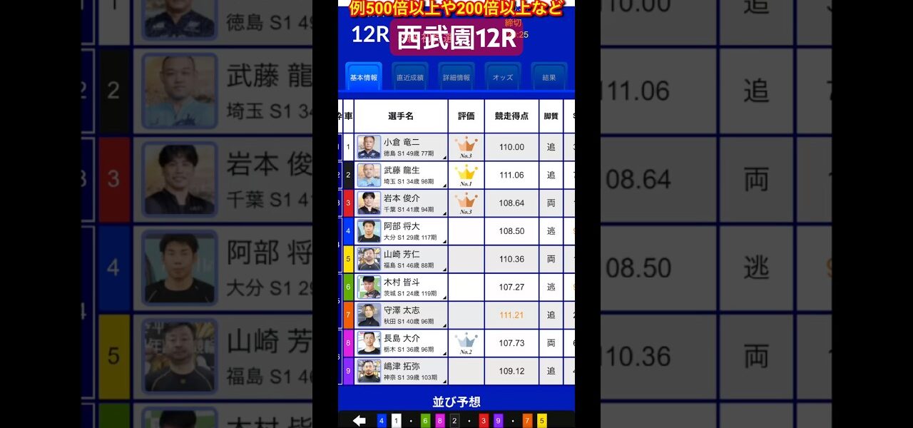 G3西武園競輪予想12R 2026年3月12日(木) ブルーウイングナイトレースS級初特選 #競輪予想 #競輪 #競輪チャンネル #競輪ライブ #ヒカル #西武園競輪 #取手競輪