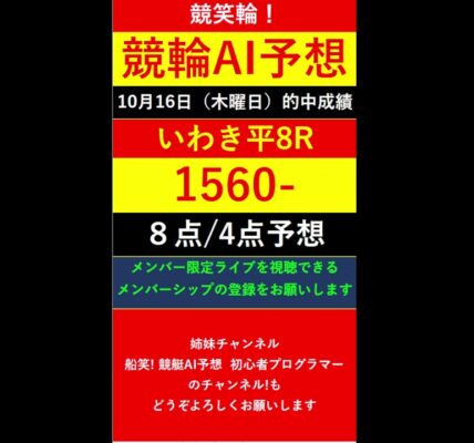ライブ #Shorts【競輪予想LIVE 】競笑輪!競輪初心者のAI予想チャンネル。2025年10月16日 予想結果のご案内です。ご視聴の皆様、本日はお疲れ様でございました! #いわき平競輪 管理人 2025年10月17日