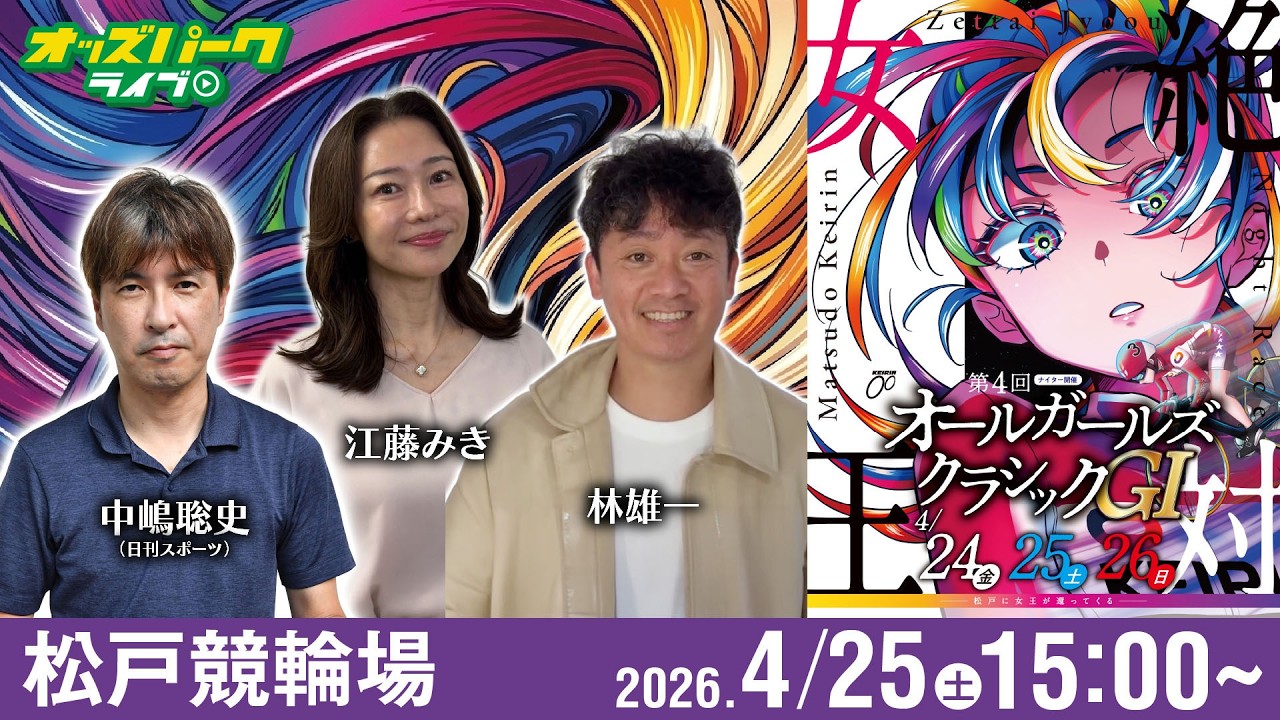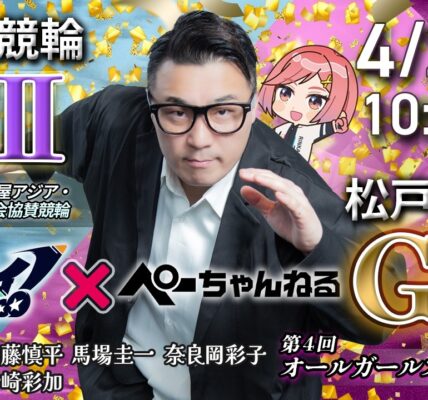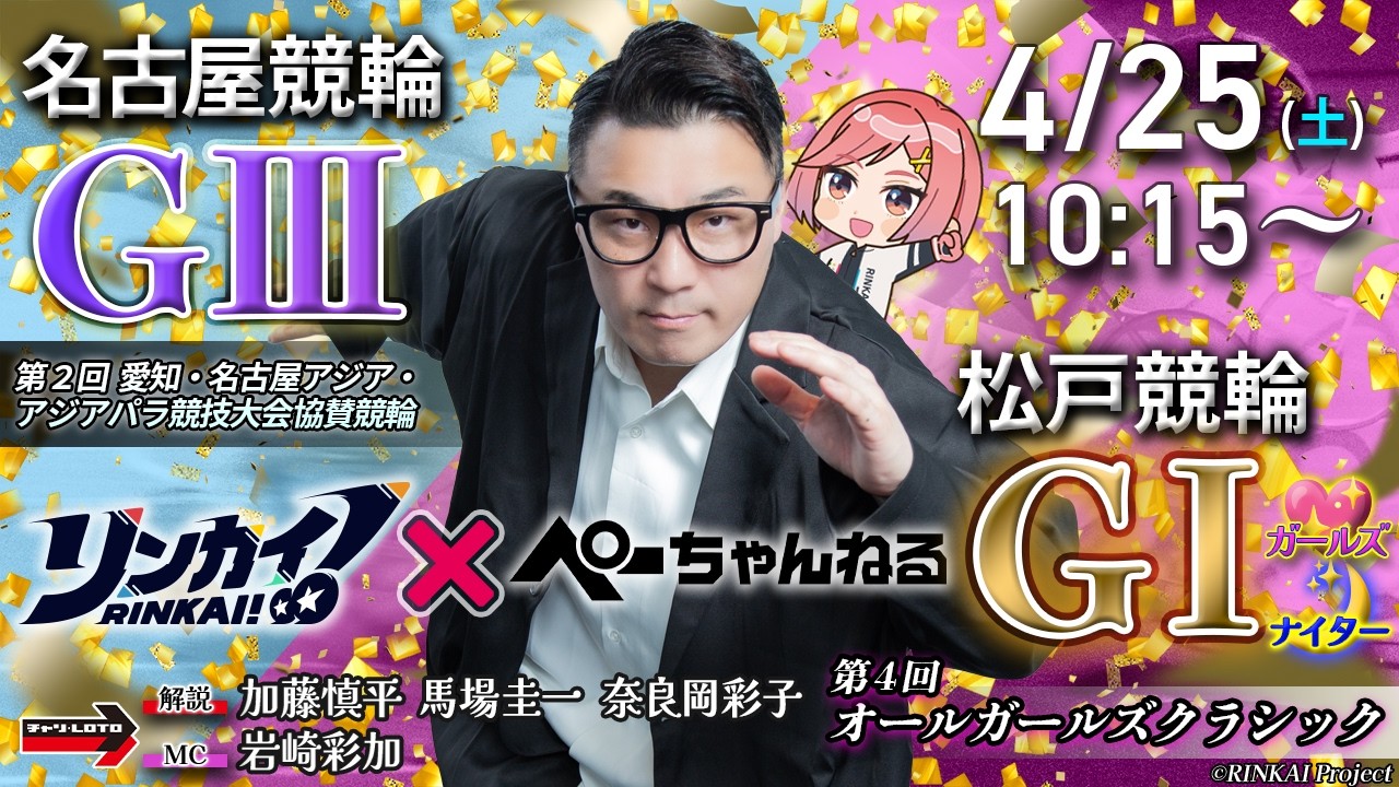 ライブ チャリロト公式競輪番組 加藤慎平の「ぺーちゃんねる」4/25(土) #名古屋競輪【3日目】アジアパラ競技大会協賛競輪[GⅢ] ~ #松戸競輪【2日目】第4回オールガールズクラシック[GⅠ♥ナイター] 管理人 2026年4月25日