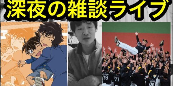 深夜の雑談ライブ!福岡ソフトバンクホークスがリーグ優勝!名探偵コナン新章スタート!世良と関係のある男が登場!?一体誰?