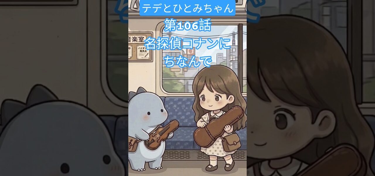 - テデとひとみちゃん第106話名探偵コナンにちなんで #4コマ漫画 #名探偵コナン #恐竜 #バイオリン #練習 #音楽教室