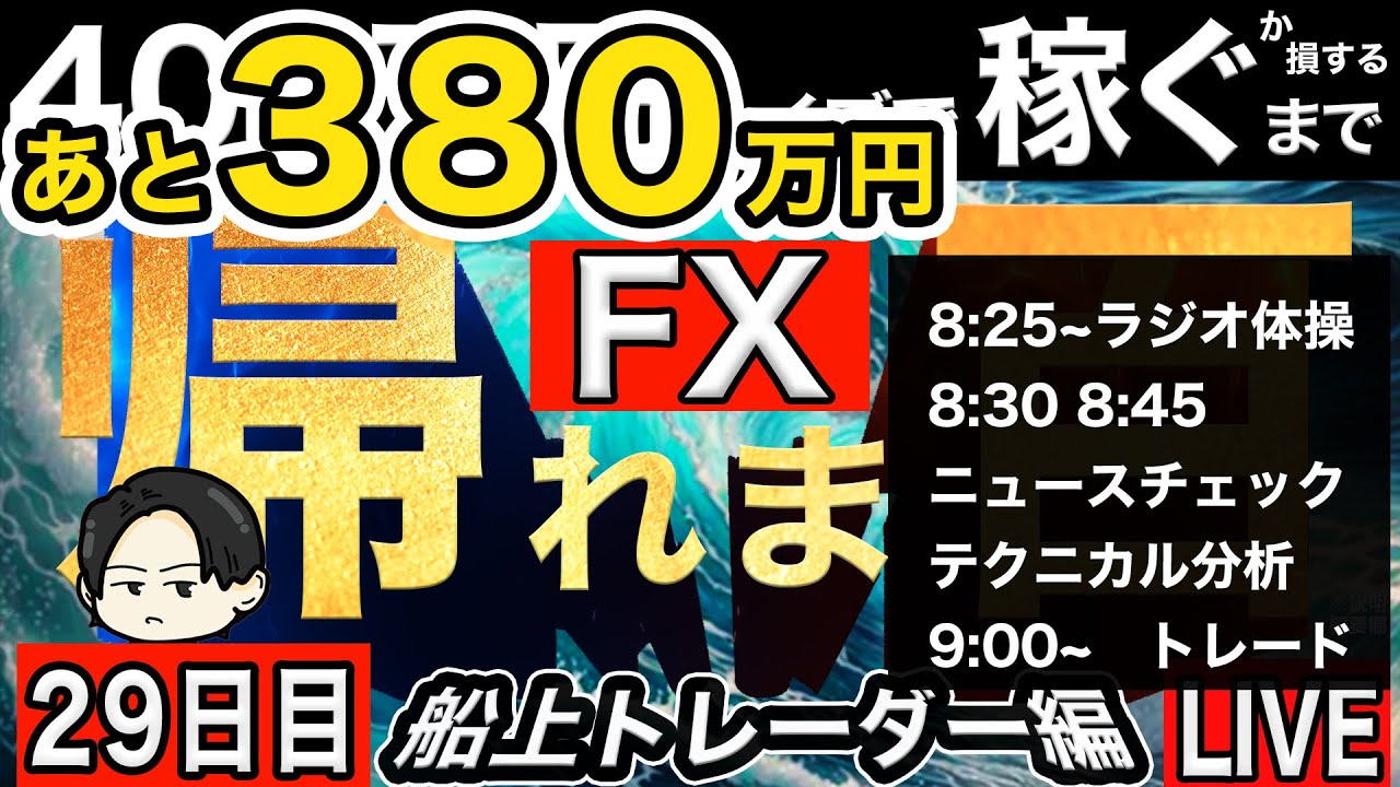 朝は体操、ニュースチェック、テクニカル分析~通常であればトレード。FXライブ配信…
