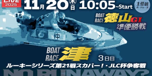 【LIVE】ボートレース津 3日目 9R~12R【ルーキーシリーズ第21戦スカパー!・JLC杯争奪戦】& 徳山G1 準優勝戦 ● 11月20日