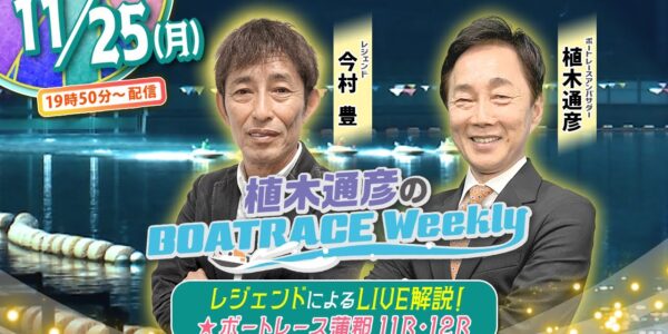 11月25日(月)19時50分から生配信!蒲郡11R・12RをLIVE解説! |植木通彦のボートレース ウィークリー|今村豊さんが植木アンバサダーとナイターレースを紐解く!|ボートレース
