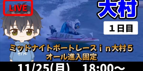 【11月25日】ボートレース大村 ミッドナイトボートレースin大村5 オール進入固定 1日目【舟券あたるLIVE】