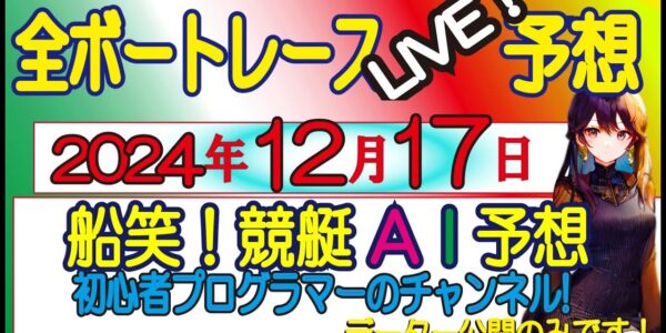 【全ボートレースLIVE予想 】2024年12月17日(火) [ 3連単 高配当狙い!】ライブ予想! 発走前に公開する!偽り無い!オリジナルの3連単予想!