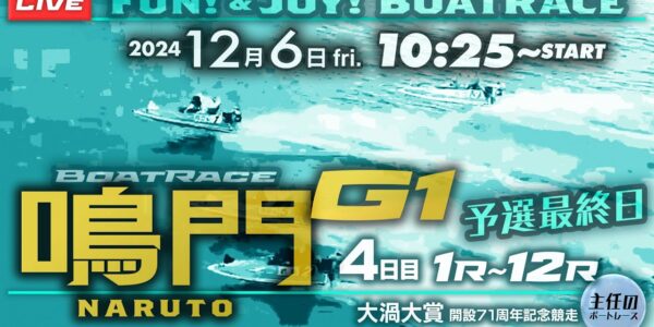【LIVE】12月06日fri. ボートレース鳴門 4日目 1R~12R 予選最終日【G1・大渦大賞開設71周年記念競走】