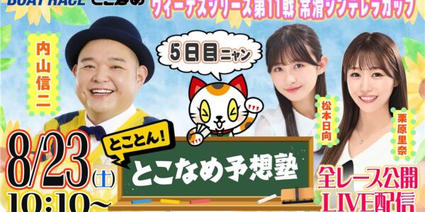 ボートレース見るなら常滑! 内山信二と松本日向、栗原里奈がBR常滑 東スタンド特…
