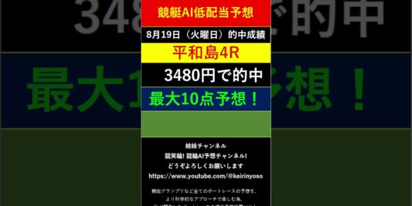 #Shorts【全ボートレースAI低額LIVE予想 】2025年8月19日予想分 結果のご案内です。ご視聴の皆様本日はお疲れ様でございました! また明日頑張りましょう!