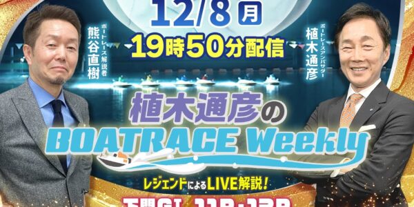熊谷直樹さんがリモート出演!下関GⅠ11R・12RをLIVE解説!12月8日(月)19時50分から生配信!|植木通彦のボートレースウィークリー|ボートレース【下関】